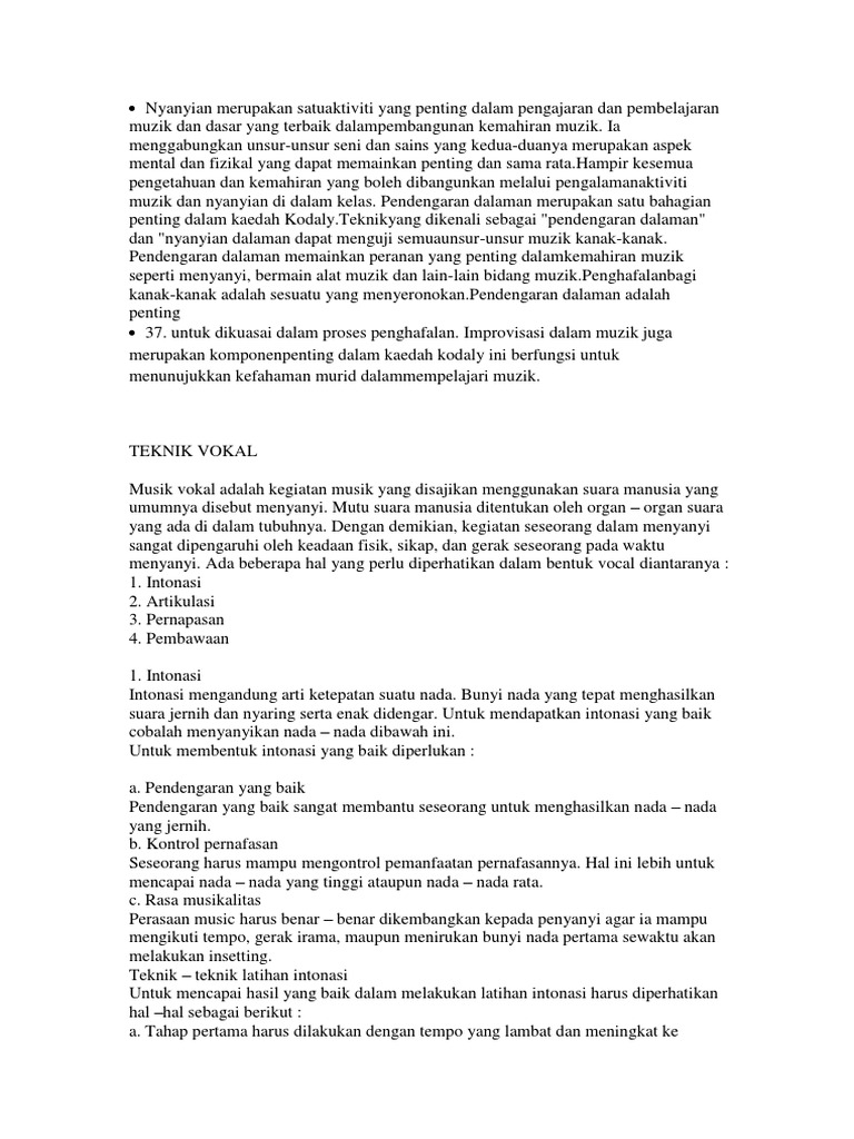 Nyanyian Merupakan Satuaktiviti Yang Penting Dalam Pengajaran Dan Pembelajaran Muzik Dan Dasar Yang Terbaik Dalampembangunan Kemahiran Muzik Pdf